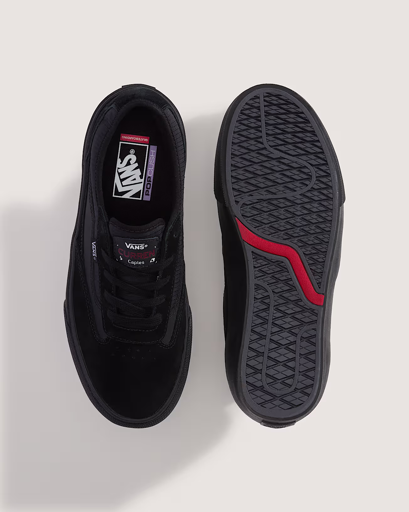 Dans sa quête incessante de la perfection vulcanisée, Curren Caples a créé sa première chaussure de skate signature. Dotée d’un nouveau motif de semelle extérieure personnalisé, elle offre une adhérence et des sensations optimisées sur la planche grâce au caoutchouc SickStick™. Avec en prime une semelle intérieure Popcush™ pour un amorti maximal et des renforts Duracap™ pour une protection supplémentaire des zones les plus sollicitées.