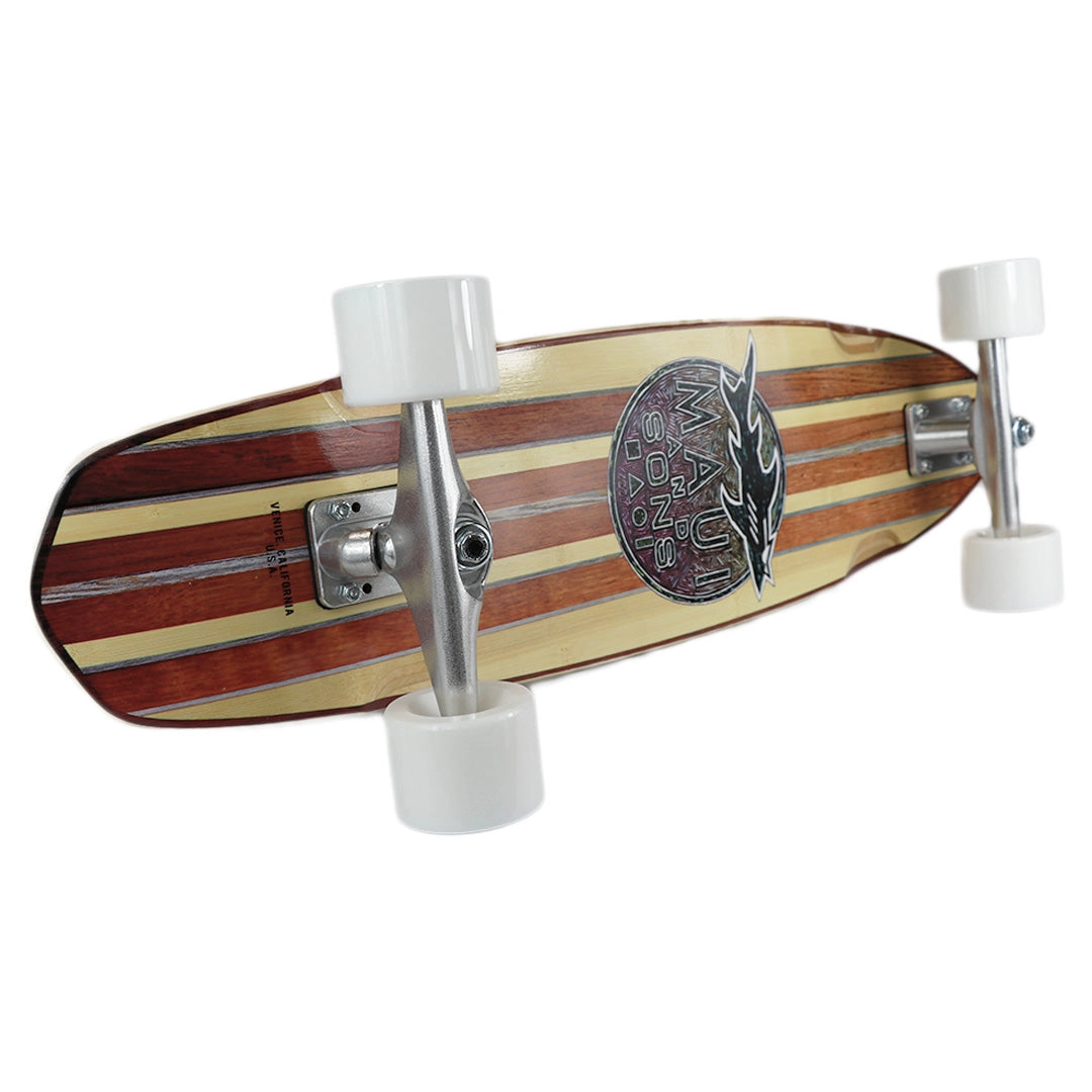 Découvrez la fusion ultime de la terre et de la mer avec le skateboard carving cruiser Maui and Sons 30”, conçu pour apporter la sensation fluide du surf directement sur le bitume. Le plateau présente une esthétique époustouflante à thème tropical, fabriquée à partir d'un mélange de bambou et d'érable de haute qualité, le rendant aussi élégant que fonctionnel pour des balades douces et ensoleillées.